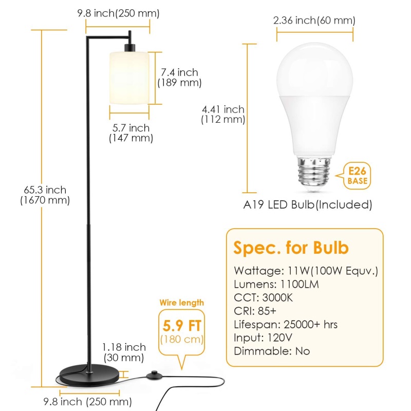 1. If you want to equip floor lamp with other bulbs, the bulb's wattage must be lower than 60W.