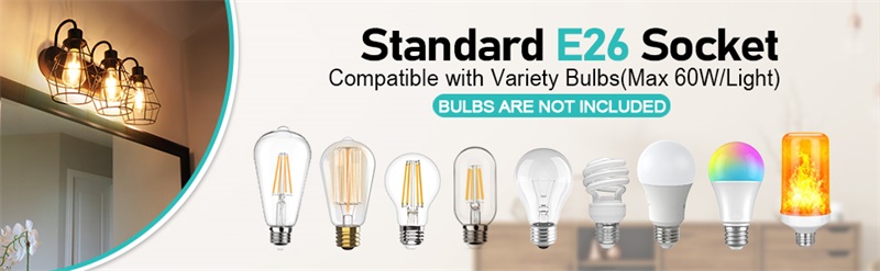 ¡¾E26 Medium Base Bulbs Required¡¿: Compatible with 60-watt max E26 based bulbs, including LED, CFL, incandescent and halogen bulbs. We recommend Edison bulbs for a better vintage style. Note: the bulbs shown in pictures are NOT included.