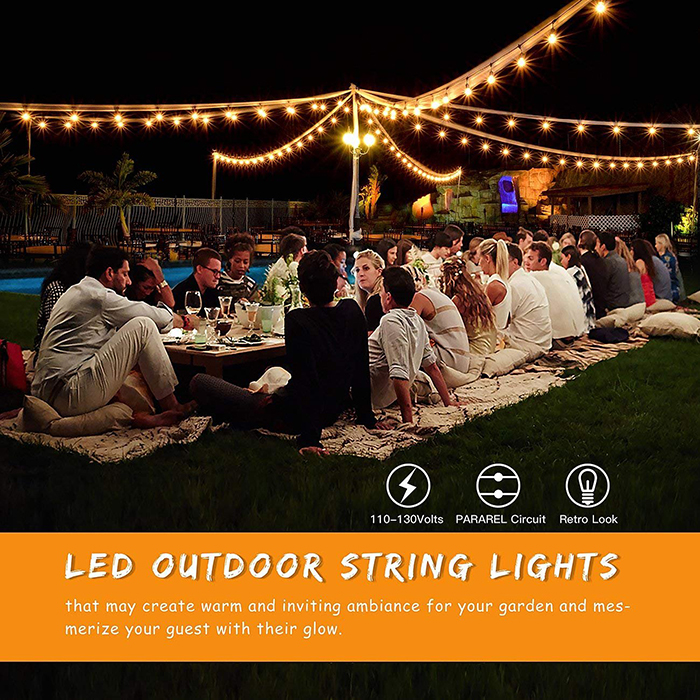 TRANSFORM YOUR BACKYARD INTO A BISTRO - Ideal for all outdoor applications, best decoration for an outdoor party, create a warm amber glow for your patio, garden, or gazebo. Professional planners request this outdoor lighting for anniversaries, weddings, holiday celebrations, and many other occasions.