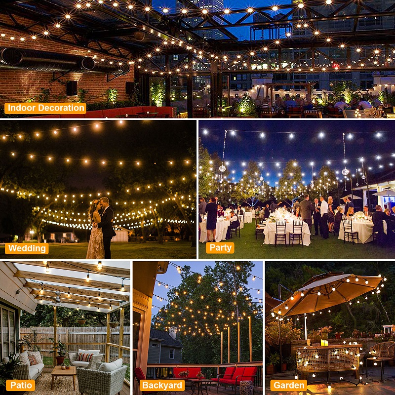 Besides, our solar patio string lights outdoor use solar power that can definitely help you save much money on electricity: Excellent 4400mAh large capacity: last 8-10 hours i.e. 8 hours of direct sunlight. Automatically turn on at night and off at dawn: don¡¯t need additional action necessary after your initial setup. A good choice as indoor/outdoor lighting decoration to lights up your evening events, holiday celebration, wedding, birthday, Christmas, New Year, party, family reunion, etc. Our 3 in 1 solar patio lights don't need an outlet, just hang it out on the trees, gate, post, or camp tent by using the included stakes and clamps. They're ideal solar patio lights for your home decor, yard, patio, cafe, garden, bistro, porch, balcony, gazebo, etc.