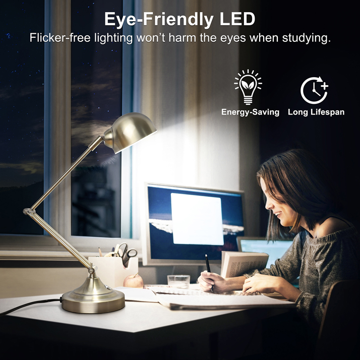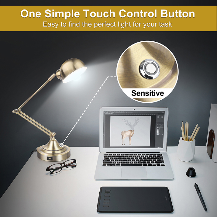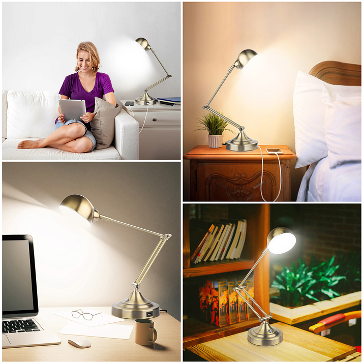 The integrated USB charging port makes it super convenient to charge your phones, tablets kindles, and other devices after a busy day at work, so you do not need to look for another outlet whenever you are in office or home. Besides, the USB port functions regardless of whether the lamp is on or off.