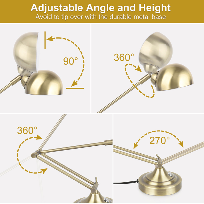 With a 360∼rotatable lamp head (adjustable 90∼vertically) and two 360∼ and 270∼ flexible arms, effortlessly adjust the lamp as you wish, ensures the light is focused properly based on your specific lighting needs. It is an indispensable and perfect lighting accessory for your daily life.